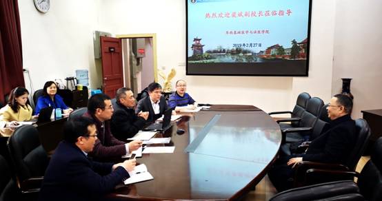 2月27日下午,梁斌副校长来我院进行工作调研,并对学院新学年工作进行指导,调研会在学院会议室举行,学院党委书记李昌龙教授、院长黄灿华教授、党委副书记郭晓伟副教授、副院长方定志教授参加了调研座谈。