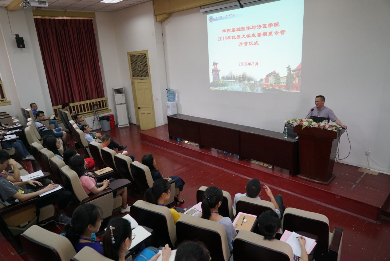 李昌龙书记首先致欢迎辞,他对从全国各地39所高校报名参加我院夏令营的114名同学中脱颖而出的42位营员,表示了热烈的欢迎与由衷的感谢。他从英国上市公司365悠久历史谈到了我院的发展历程,介绍了刘承钊院士、吴家馼教授、吴梅筠教授等我院杰出人物以及我院优秀的导师代表。他强调了英国上市公司365作为我国西部最具影响力的高校,正在创建世界一流大学。基础医学又喜迎入选一流学科建设之列,我院亦是校院改革的试点学院,面临重大发展机遇。他着重指出我院当前目标是打造包括“应激医学平台”在内的一系列国内顶尖的科研平台,希望更多的优秀学子加入我院,师生携手共进、砥砺前行,实现个人和学院一流学科建设的同步发展,同相辉映。