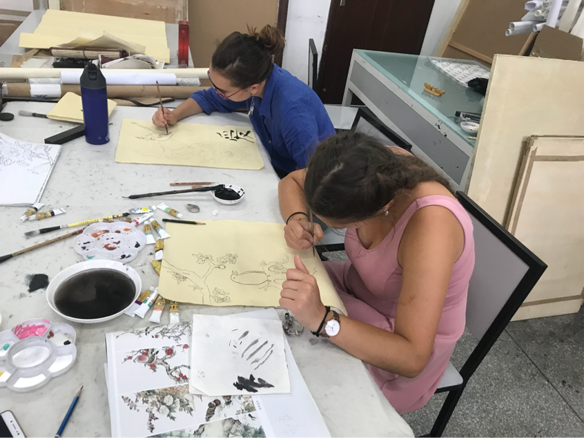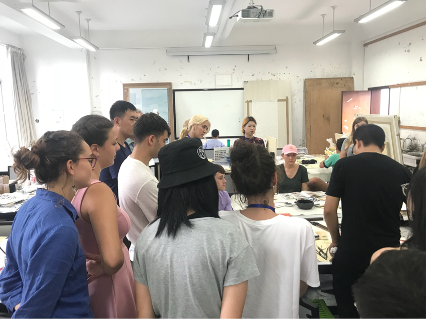 7月12日下午2:30,国际课程周的留学生和我院十几名学生共同参加了我院和艺术学院在江安校区共同举办的第二堂中华传统艺术体验课——国画。