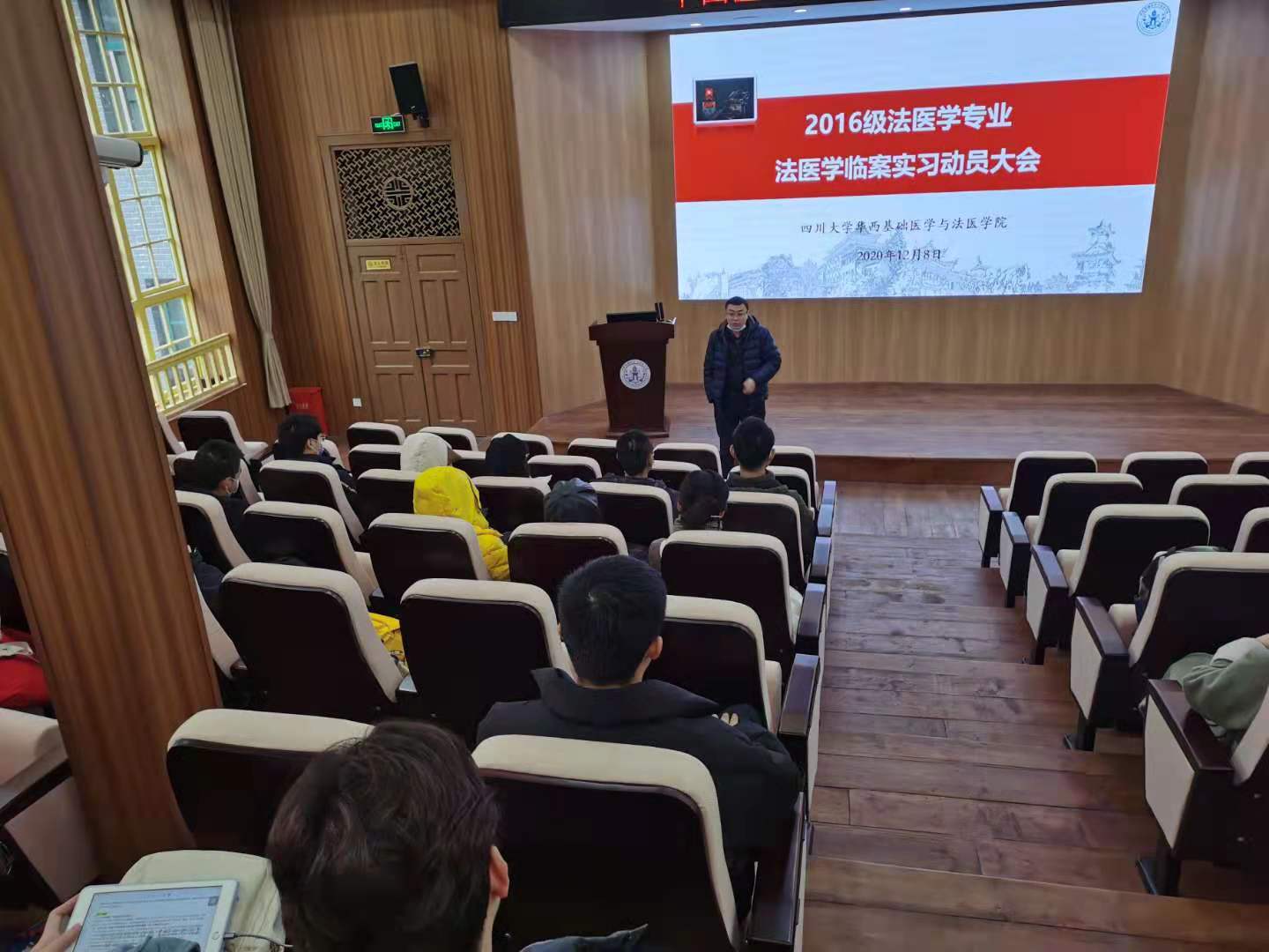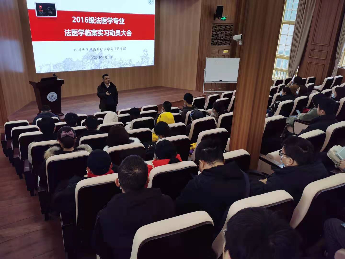为引导本科毕业生做好专业实习前的各项准备,推进实习工作的顺利开展,我院于12月8日上午,在第五教学楼报告厅举行2016级法医学专业毕业实习动员大会,学院郭晓伟副书记和梁伟波副院长出席了动员会。