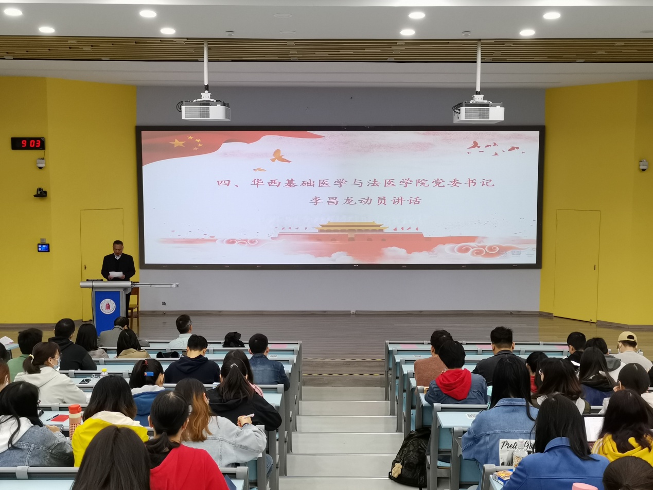 华西基础医学与法医学院党委书记李昌龙代表三院党委作动员讲话。李书记首先向参加培训的120名同学表示祝贺,他讲到,发展对象培训班是加强党的基层组织建设的一项重要任务,是提高发展对象思想认识、政治觉悟、党性修养的现实要求,是发展党员不可或缺的重要步骤。同时,培训班对每位学员的成长进步和个人发展来说,都具有不同寻常的意义。希望同学们珍惜难得的学习机会,不断强化自身党性修养,提高自身素质。最后,李书记表示,培训是短暂的,希望同学们充分利用党校培训的机会,明确努力方向,知行合一,在学习和生活中向党员看齐,真正按照党员的标准严格要求自己,以实际行动争取早日加入中国共产党。