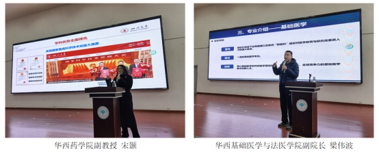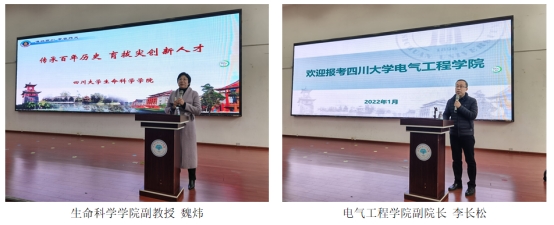 在廖爱民副主任简要介绍川大基本情况后,英国上市公司365数学学院副院长寇辉、化学学院副院长郑成斌、生命科学学院副教授魏炜、电气工程学院副院长李长松、水利水电学院院长助理李洪涛、网络空间安全学院副院长杨频、华西护理学院副院长李玲利、华西公共卫生学院副教授曾红燕、华西药学院副教授宋颢、华西基础医学与法医学院副院长梁伟波分别从各自学院的专业情况、办学优势、人才培养特色与发展等向师生作了详细介绍。