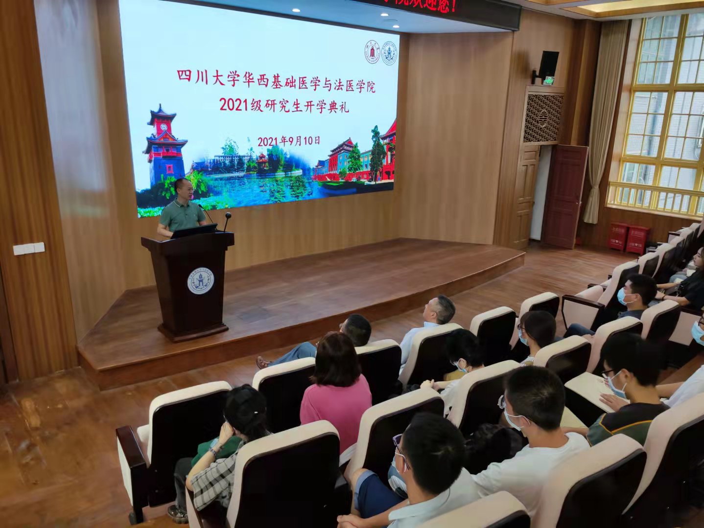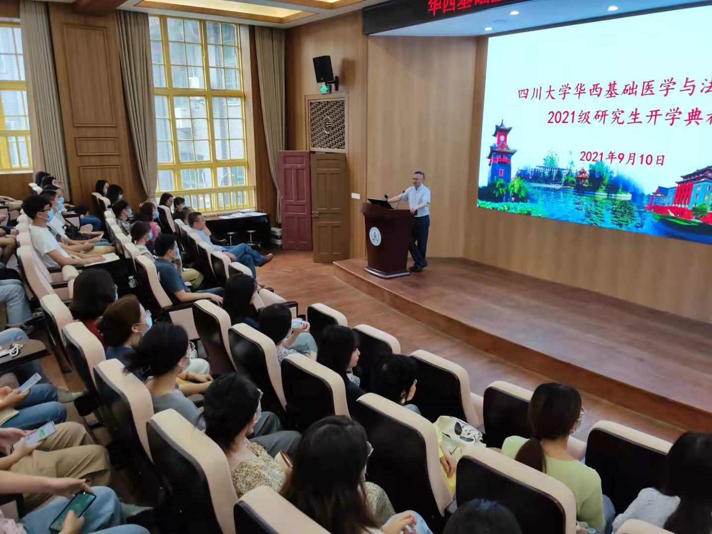 9月10日上午,我院在华西五教报告厅举行2021级研究生开学典礼。学院党委李昌龙书记、郭晓伟副书记、刘肖珩副院长及2021级全体研究生参加开学典礼,开学典礼由郭书记主持。