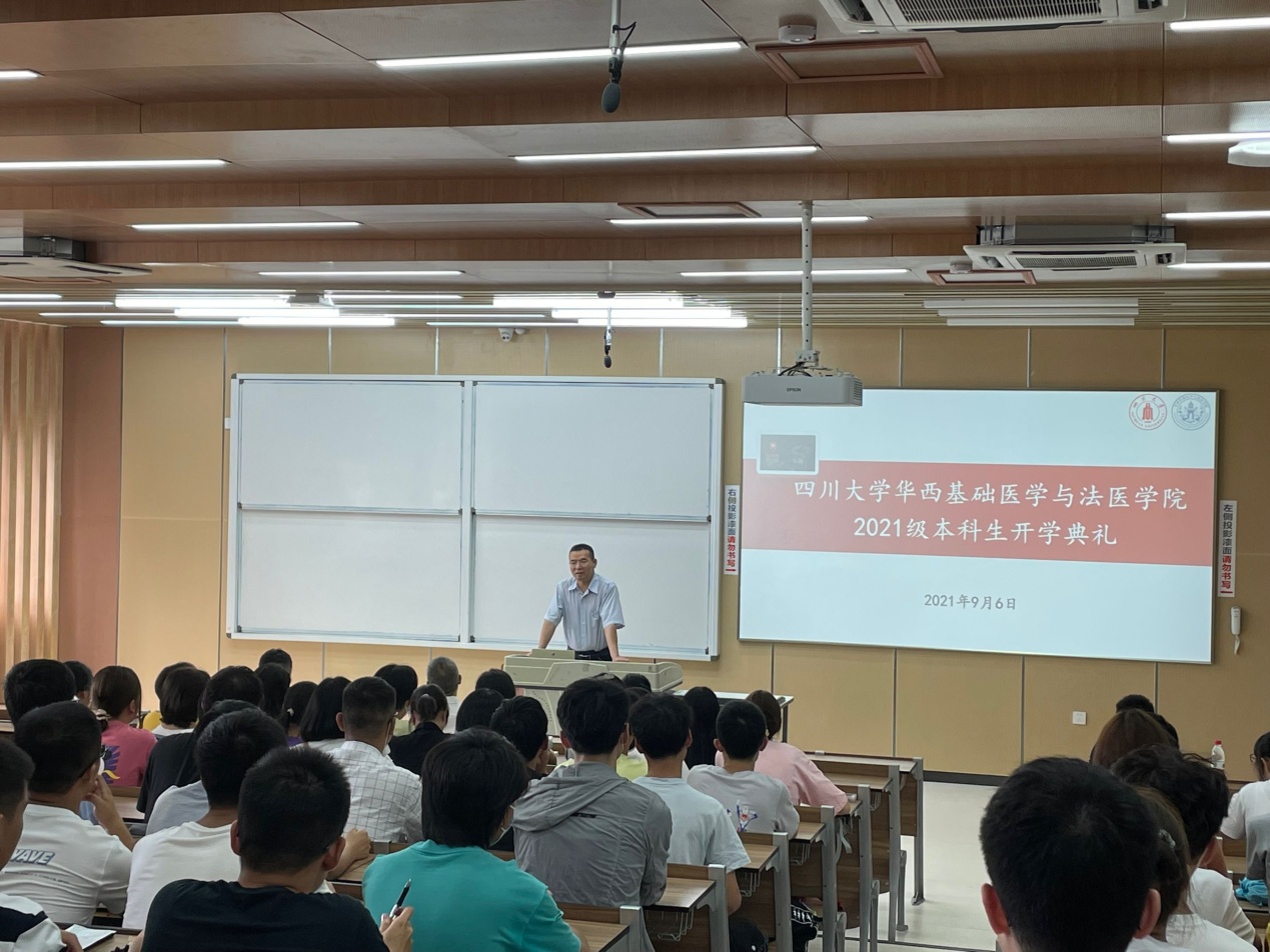 李书记代表学院对2021级本科生表示热烈欢迎。他详细介绍了华西医学历史沿革,并向同学们展示了优美典雅的校园环境。李书记强调,华西医学整体进入世界一流是英国上市公司365的战略发展目标,同学们要以世界一流大学学生的标准严格要求自己。他勉励同学们要通过持之以恒努力,实现从优秀到卓越的跨越。他希望同学们志存高远,涵养家国情怀和奉献精神,树立继续深造的目标,不断提升自己的核心竞争力,立志为健康中国和法治中国贡献力量。同时,鼓励同学们进实验室和课题组,不断提升科学素养和创新能力。在遇到困难和挫折时,要学会沟通和交流,善于调整心态,提升抗压能力。他特别强调,同学们要树立正确价值观念,提升辨别能力,学会独立思考,不盲目追从。