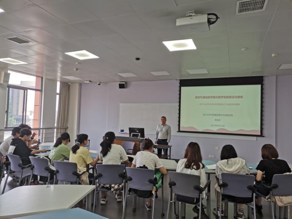 6月10日上午,学院书记李昌龙教授在江安校区一教A208与基础医学专业拔尖班同学们见面,一起学习了习近平总书记在两院院士大会的讲话精神,给同学们上了一堂生动的思想政治课。