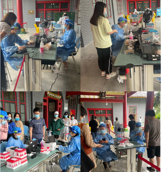 学院党委积极响应学校党委的号召,迅速集结16名党员同志组成党员志愿服务队。9月2日上午,由我院李华书记、董立华老师、应国量老师、蒋宝晴老师组成的第一组党员志愿服务队在华西校区核酸检测点为在校师生提供核酸检测志愿服务。人解组胚党支部书记董立华同志为了确保检测采码系统持续使用,不影响下午核酸检测工作的开展,坚守志愿服务岗位到当天下午6点。9月3日下午,由我院梁伟波副院长、郑风劲老师、青思含老师、陈琦伟老师组成的第二组党员服务志愿队在华西核酸检测点持续为校内师生提供核酸检测志愿服务。9月5日上午,由我院黄莉主席、青思含老师、应国量老师、孙晓东老师组成的第三组党员服务志愿队在华西核酸检测点持续为校内师生提供核酸检测志愿服务。而即将于9月7日上午参加党员志愿服务的第四组党员服务志愿队也已经集结完毕。很多党员同志纷纷表示只要组织需要,防疫政策允许,必将第一时间积极报名参与。