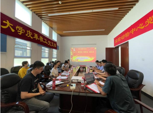 为庆祝建党101周年,弘扬伟大建党精神,喜迎党的二十大胜利召开,6月27日下午华西基础医学与法医学院实验动物中心党支部联合轻工科学与工程学院皮革教工党支部,在江安校区实验动物中心会议室联合开展“迎七一、强党性、跟党走、促发展”主题党日活动。轻工科学与工程学院党委委员、组织员田彬,华西基础医学与法医学院党委委员、组织员郑风劲,皮革系主任林炜、皮革教工党支部书记李正军、实验动物中心党支部书记刘学旭以及两个支部党员约20人参加了活动。此次主题活动由实验动物中心党支部书记刘学旭主持。