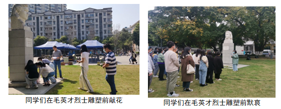 2018级本科同学、全体硕士党员同学、法医学博士支部同学在毛英才烈士塑像前举行了清明祭扫活动。同学们认真学习了毛英才烈士积极参加革命活动不幸被捕,但坚贞不屈,视死如归,坚决不叛党的英雄事迹,并在毛英才烈士塑像前进行默哀,敬献鲜花,表达对革命先辈的沉痛哀思和崇高敬意,感怀其崇高的政治思想觉悟和革命精神。
