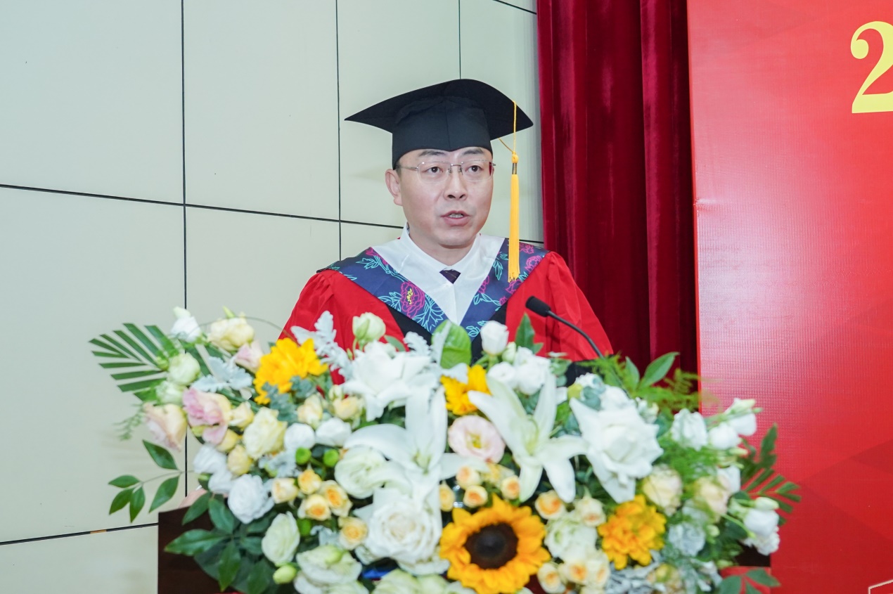 教授委员会主席陈建平教授作为教师代表发言。他希望同学们无论在任何岗位上都能志存高远、追求卓越,一旦锁定目标,就要坚持不懈,在追求中获得心流的愉悦和人生的快乐;同时不忘学院的无限牵挂,带着母校的荣耀和嘱托,带着老师们的深深祝愿,投身于中华民族伟大复兴的伟业中,用拼搏书写别样精彩的人生。