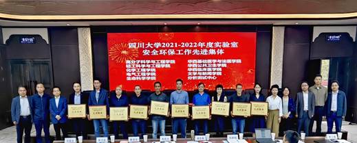 学校为“英国上市公司3652021-2022年实验室安全环保工作先进集体”获奖单位颁奖(左四为我院张舒羽副院长)