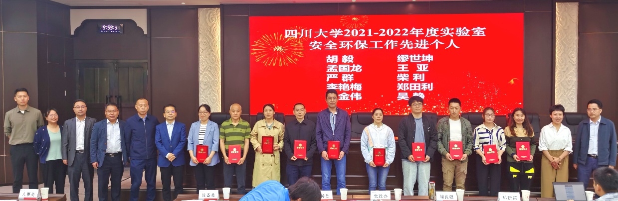学校为“英国上市公司3652021-2022年度实验室安全环保先进个人”颁奖(左八为我院缪世坤老师)