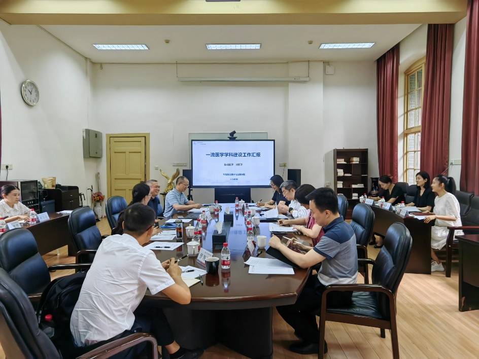 副院长刘肖珩从学院学科建设基础、第五轮学科评估情况、学科建设目标、学科建设有效举措几个方面进行了专题汇报。院长李昌龙进行补充汇报,他表示,过去几年在学校及华西医学中心的大力支持下,学院学科建设工作取得一定的成绩。但是对标基础医学和法医学迈入一流学科的目标,学院学科发展任重道远,需要从进一步从凝练学科发展方向、优化个性化、全过程培养管理体系、健全人才引进机制、推行多元化引进及用工模式、制定师资队伍建设“一揽子”计划等多个方面持续发力。