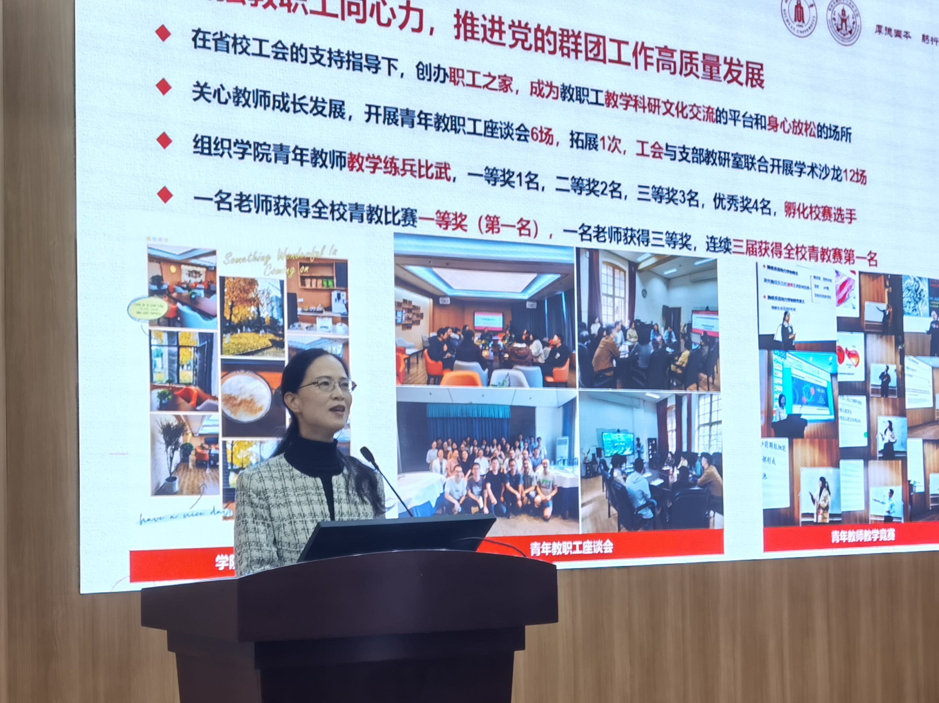 会上,学院党委书记李华同志作了题为《凝心聚力谋发展,强基固本创一流》的述职报告,全面总结了2023年度学院的党建工作。她指出,2023年度学院领导班子带领全院师生坚持以习近平新时代中国特色社会主义思想为指导,认真贯彻党中央及学校党委部署,学习贯彻落实学校第九次党代会和党委九届二次、三次全会精神,扎实开展主题教育,全力打造三个一流,在强化理论武装,强化组织管理、强化融合互促、强化学院生态、强化群团建设五个方面,通过二十条切实可行的举措实现了提质增效,真抓实干推动了学院高质量发展。