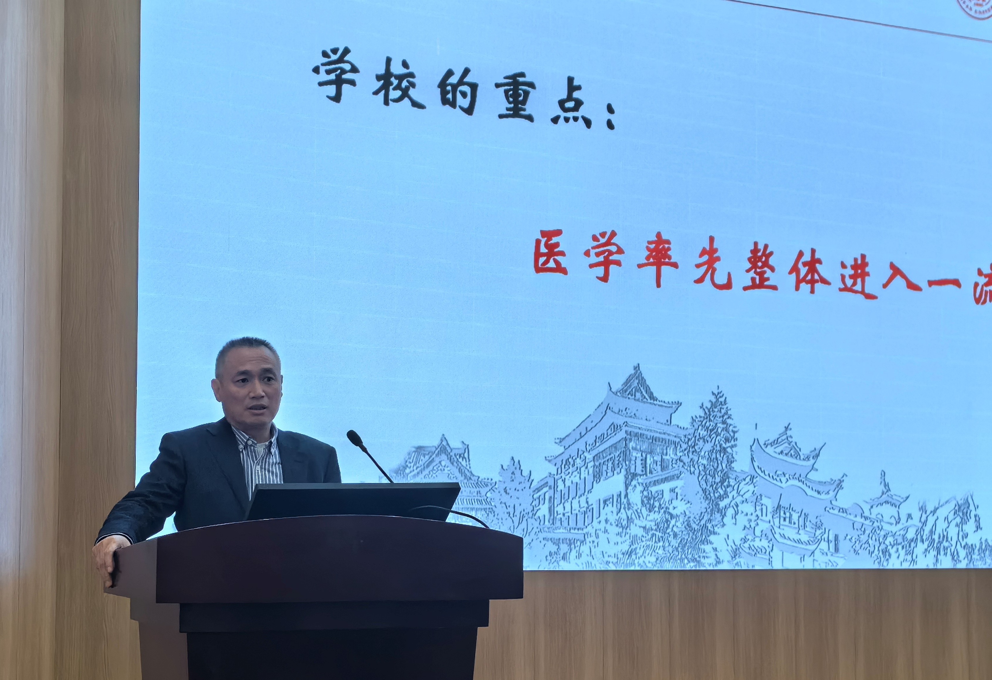 院长李昌龙同志向全院教职工汇报2023年度学院工作,他表示,2023年,学院在领导班子和全体教职工的努力下,在凝练学科方向、建设师资队伍、推进科研工作、提升人才培养质量、开展国际交流合作、筑牢安全环保防线、建设一流保障体系、提升实验动物中心服务水平等方面取得了不错的成绩,他希望在新的一年里,全院教职工要凝心聚力锚定目标,为医学率先整体进入一流贡献华西基法力量。