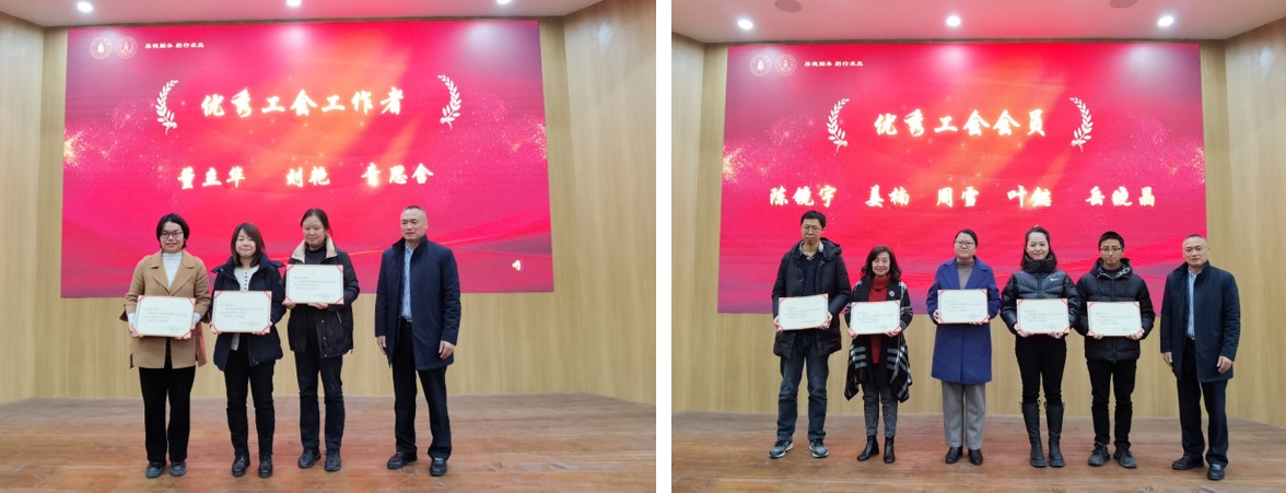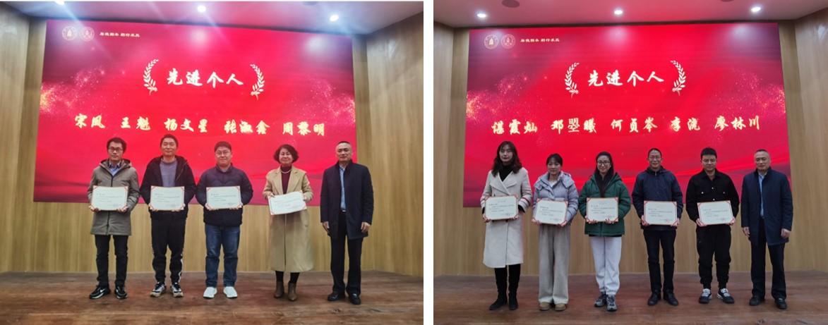 为弘扬争优创先精神,会上表彰了教职工优秀代表,学院根据2023年度工作考核结果,表彰了生物化学与分子生物学教研室、法医物证学教研室、生物医学工程研究室、应激医学研究室、放射医学研究室五个先进集体,谌霞灿、邓曌曦、何贞岑、李浇、廖林川、宋凤、王魁、杨文星、张淑鑫、周黎明十位先进个人,陈夏梦、李钢琴、沈阳、王正、曾烨五位优秀青年科研之星,冯颖、李婧瑜、孙晓东、袁东智、赵志伟五位优秀青年教学之星,陈晓刚、彭旭、张霁、周琳琳、朱磊五位公共事务先进个人,董立华、刘艳、青思含三位优秀工会工作者,陈镜宇、姜楠、周雪、叶懿、岳晓晶五位优秀工会会员,学院领导为获奖集体、个人颁发荣誉证书,全院教职工以热烈的掌声向获奖者表示衷心的祝贺。