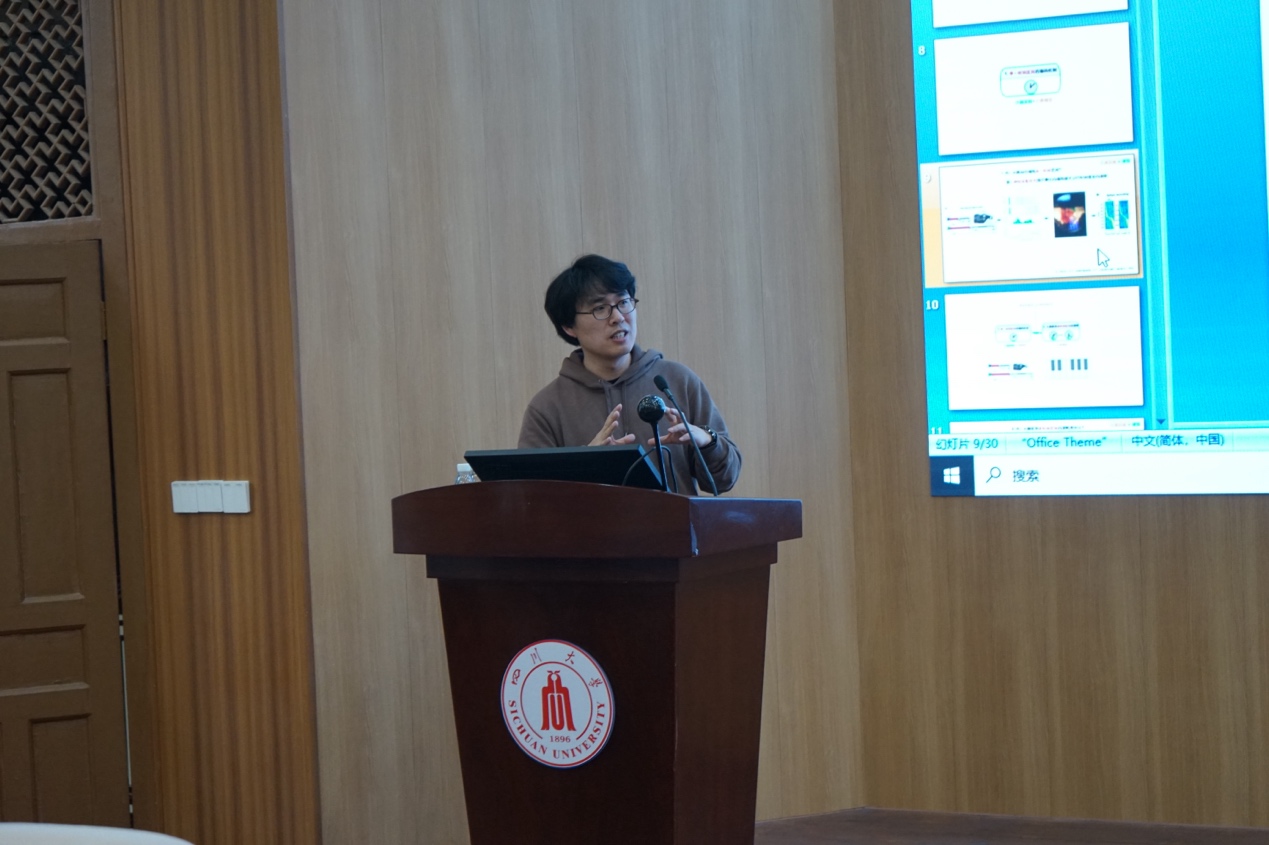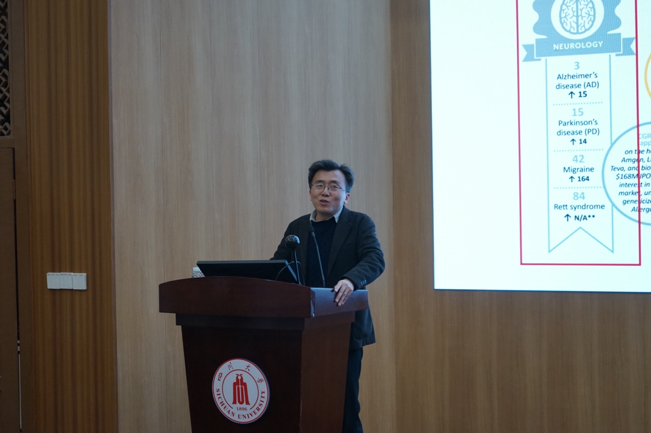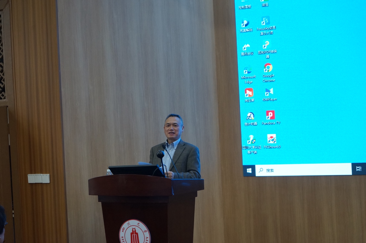 报告由我院李昌龙院长主持。周尚林和李伟广教授皆为我校优秀校友,分别毕业于华西药学院与华西基础医学与法医学院。此次二位教授以专家学者身份回访母校,李昌龙院长代表学院表示感谢,并致以热烈的欢迎。