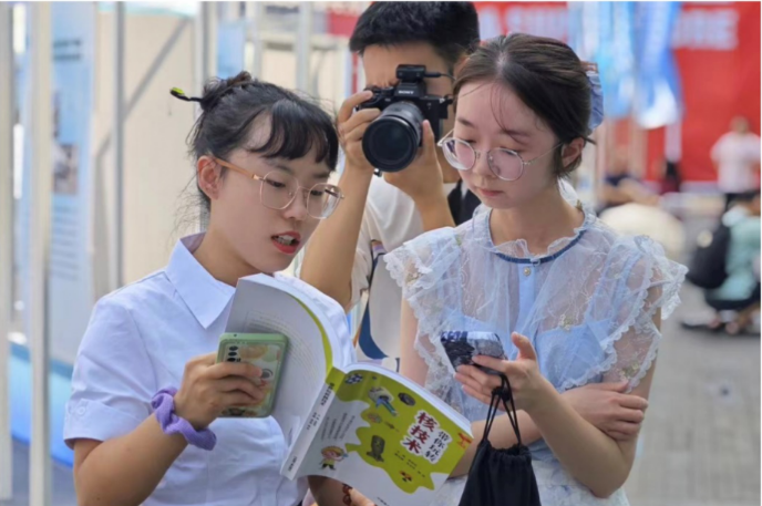 科普书籍创作成员李晓倩在“科普熊猫·蓉遇2024”活动现场接受封面新闻和华西都市报采访