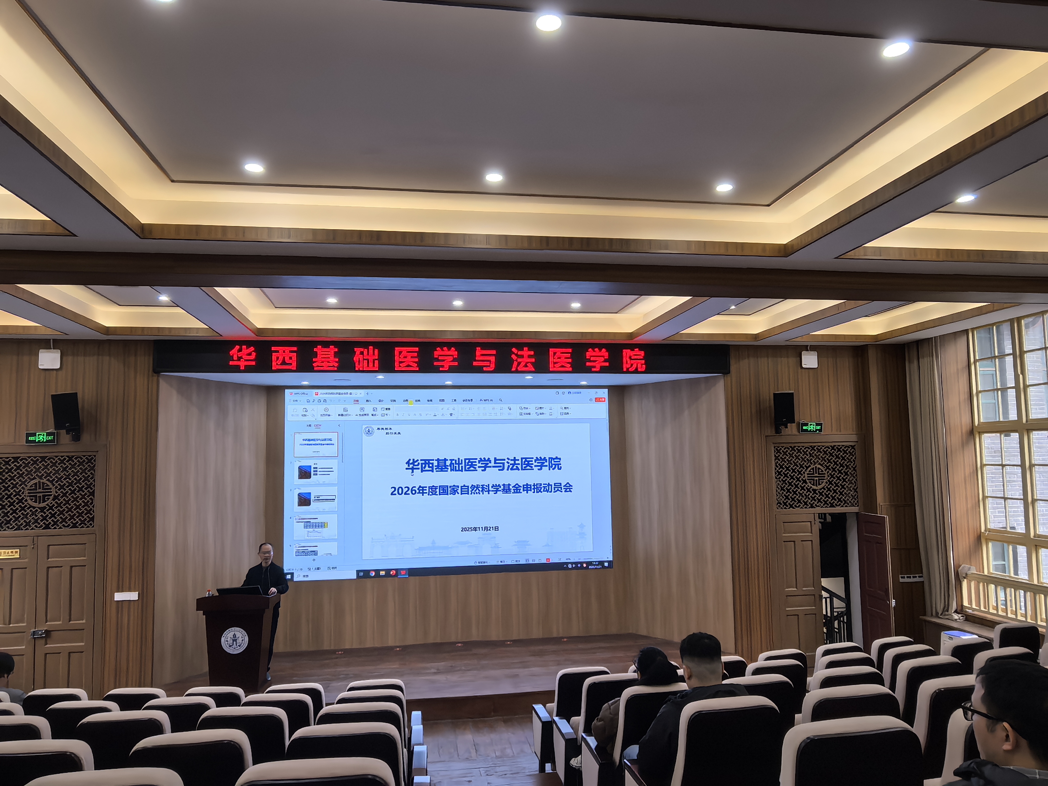 2025年11月21日下午14点30分,我院在华西五教报告厅举行2026年度国家自然科学基金申报工作会,会议由刘肖珩副院长主持。
