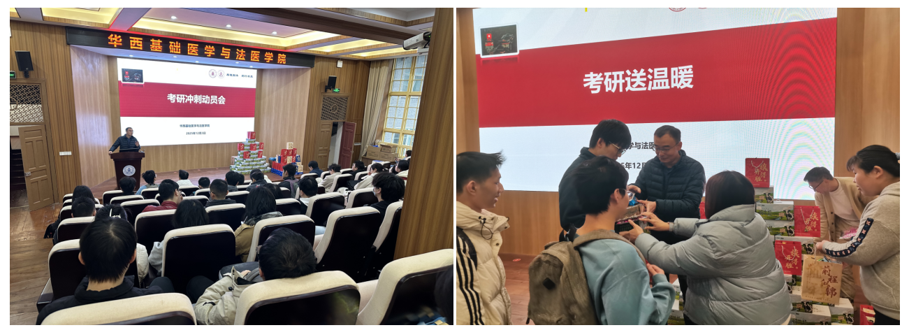为坚定考研学子信念、提振冲刺信心,12月3日下午,学院在华西校区第五教学楼教学报告厅室召开2026届考研冲刺阶段动员会。学院党委副书记罗海玻教授,学生科科长董晓爱老师,辅导员郑风劲、彭铎和30余名考研学生代表参加此次活动。