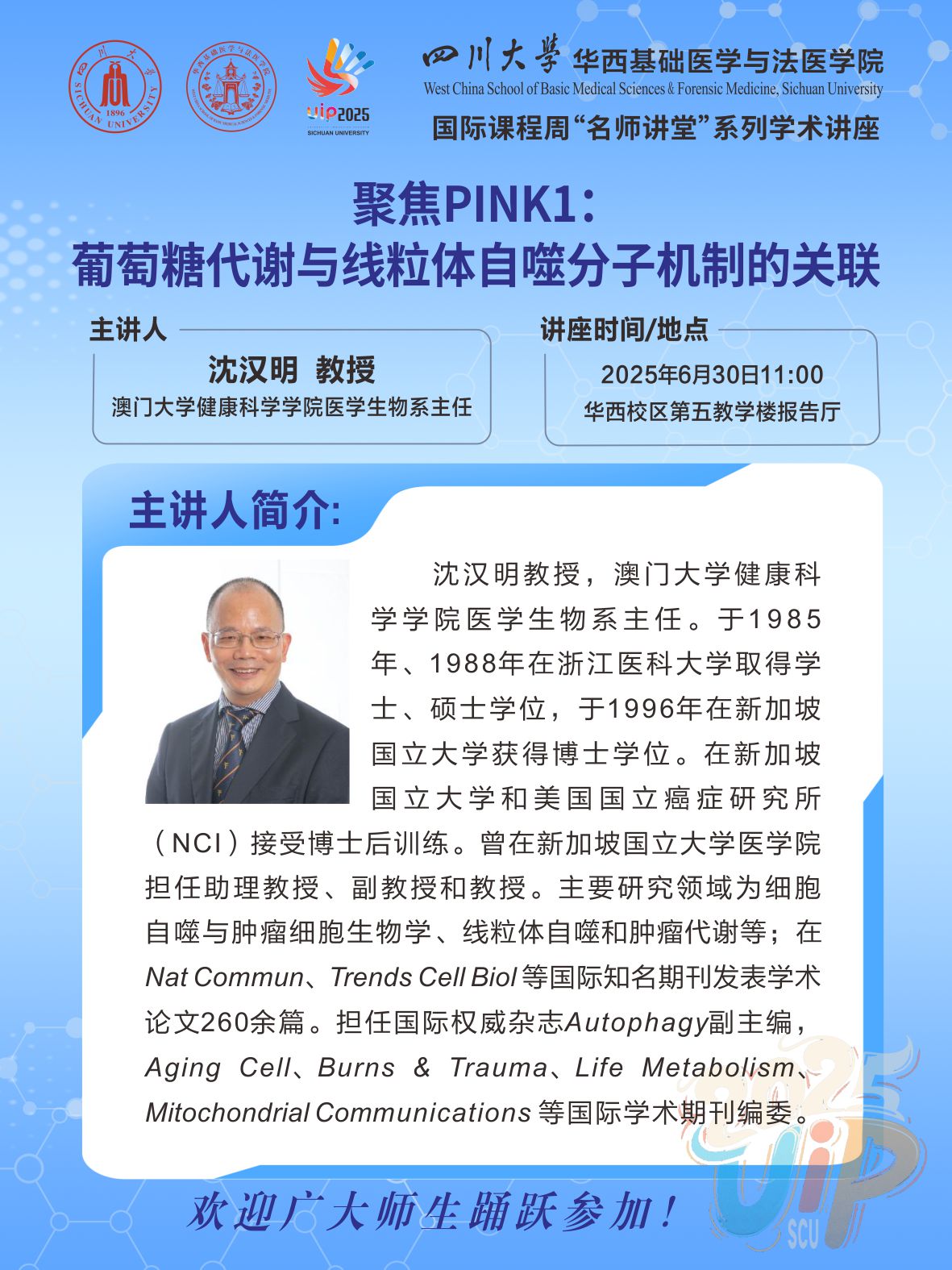 【2025年国际课程周“名师讲堂”系列学术讲座】聚焦PINK1:葡萄糖代谢与线粒体自噬分子机制的关联