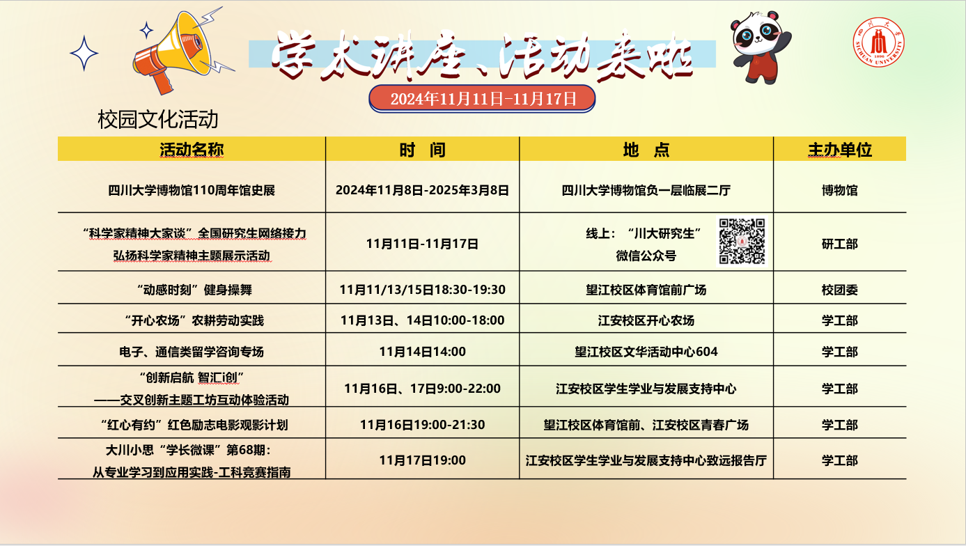 英国上市公司3652024年11月11日-11月17日学术讲座论坛及校园文化活动预告
