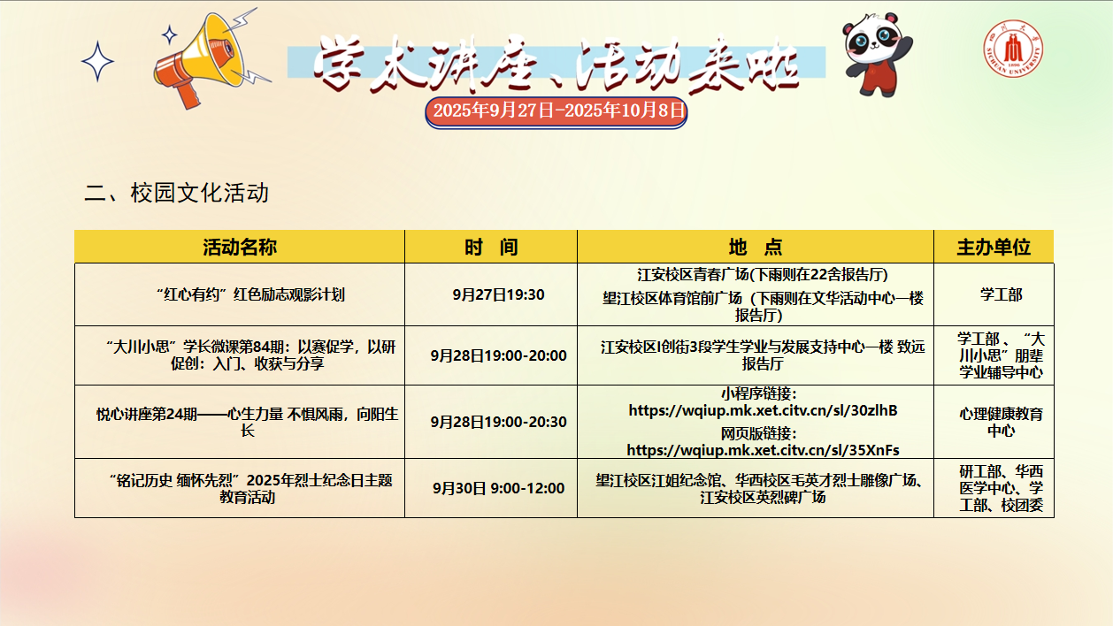 英国上市公司365校园文化活动预告(2025年9月27日-2025年10月8日)