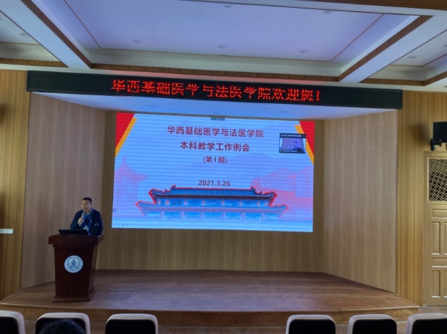 2021年3月26日下午3点,我院在华西校区第五教学楼报告厅召开了本年度第一期全院本科教学工作例会。会议由教学副院长梁伟波教授主持,各教研室主任和教学秘书现场参会,不行课的老师通过腾讯会议线上参会。