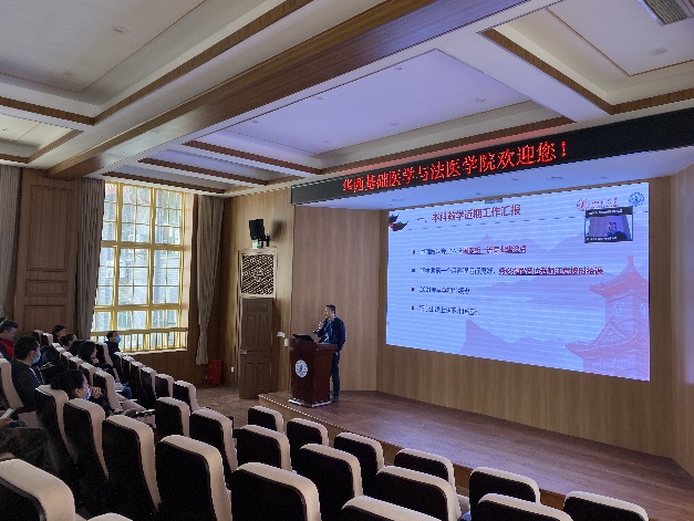 教学副院长梁伟波教授介绍了近期本科教学工作开展情况,新学期第一个月课程运行良好,顺利完成2021年春季学期补缓考工作,留学生课程持续进行线上线下混合式教学。实践教学方面,2016级和2017级基础医学专业学生完成了毕业论文中期检查和毕业论文开题,2016级法医学专业学生在各实习基地顺利开展法医实习。学院与乐山市公安局刑事侦查支队续签实习基地合作协议,共同探讨法医人才培养和法医事业发展。他强调,新学年,要加强基层教学组织建设,加大力度做好本科教育教学研讨与听课评议,持续推进一流课程建设,力争我院门门课程是金课。各位教师要继续做好班主任、学术导师等学生指导工作,注重教研教改项目研究与教育教学水平提升。