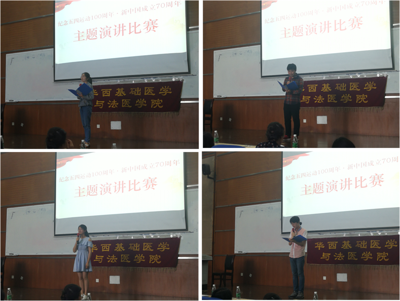 为弘扬五四运动精神,增强青年学子爱国主义情怀,践行社会主义核心价值观,营造积极向上的校园文化氛围。5月17日下午,我院在江安校区综合楼C407报告厅举行纪念五四运动100周年·新中国成立70周年主题演讲比赛。院党委李昌龙书记、郭晓伟副书记、教导员孔古娅老师、本科辅导员陈维操、董晓爱老师出席活动并担任评委,17、18级本科生参加活动,观看比赛。