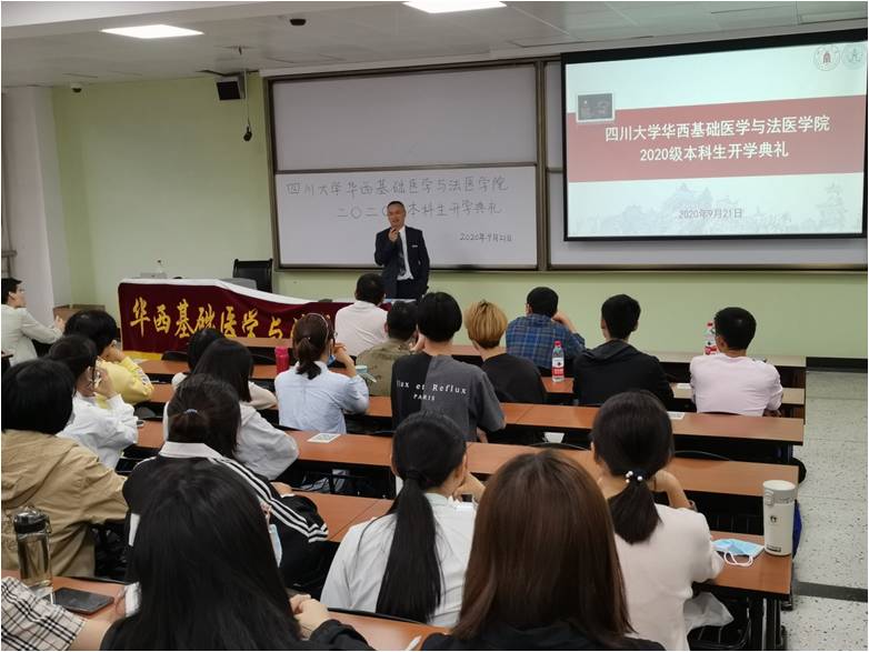 9月21日下午,我院2020级本科生开学典礼在江安校区第一教学楼B座301教室举行。学院党委李昌龙书记、郭晓伟副书记、梁伟波副院长、教导员孔古娅老师、江安校区辅导员老师以及100名2020级本科生参加了开学典礼。开学典礼由郭晓伟副书记主持。