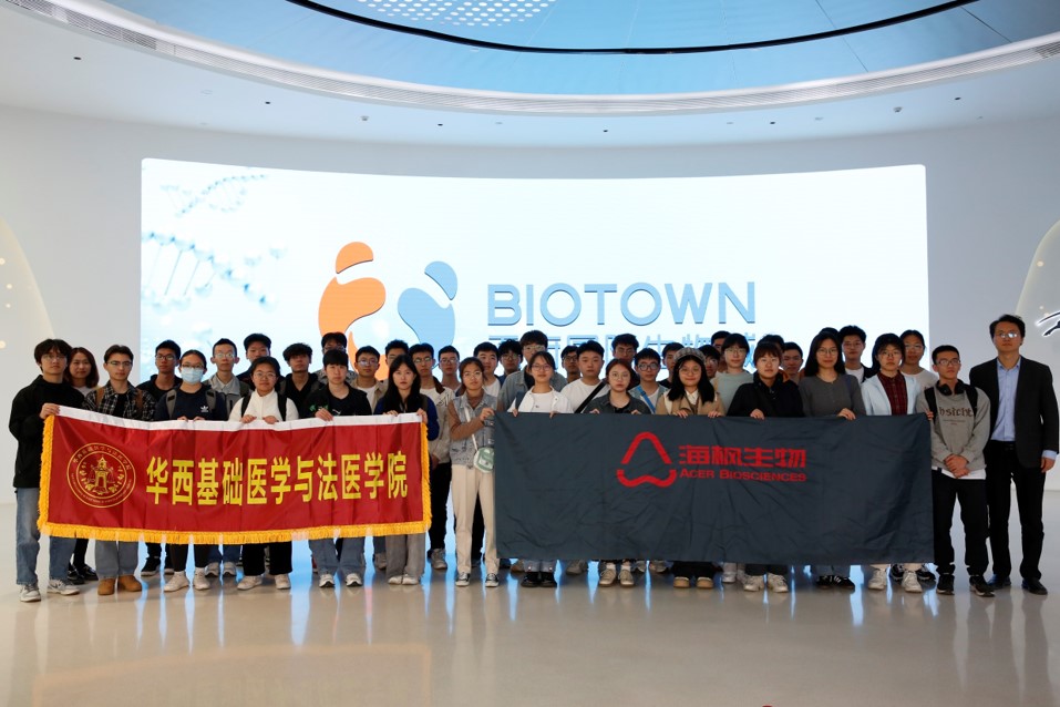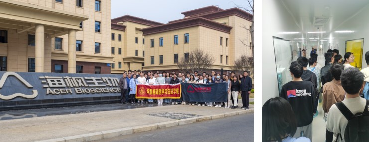 在生物城海枫生物园区,其主要创始人于源、蔡邵辉等老师早早地等候同学们到来,对我院同学们表示了热烈的欢迎。他们介绍了公司创立的初衷与目标,希望同学们能在此次参观中有所获、有所得。在研究人员的带领下,同学们参观了在园区内部的一站式实验基地,与实验室人员互动交流,深入感受一流的实验环境与先进医学设备,了解了医学“新质生产力”如何为医学产业未来赋能。