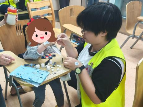 在实践体验环节,志愿者“一对一”陪同患儿完成航空主题积木与拼图的搭建。整个活动室仿佛置身于太空之中,搭建起无数的火箭与航天空间站,为患儿们的院内生活带来欢乐。