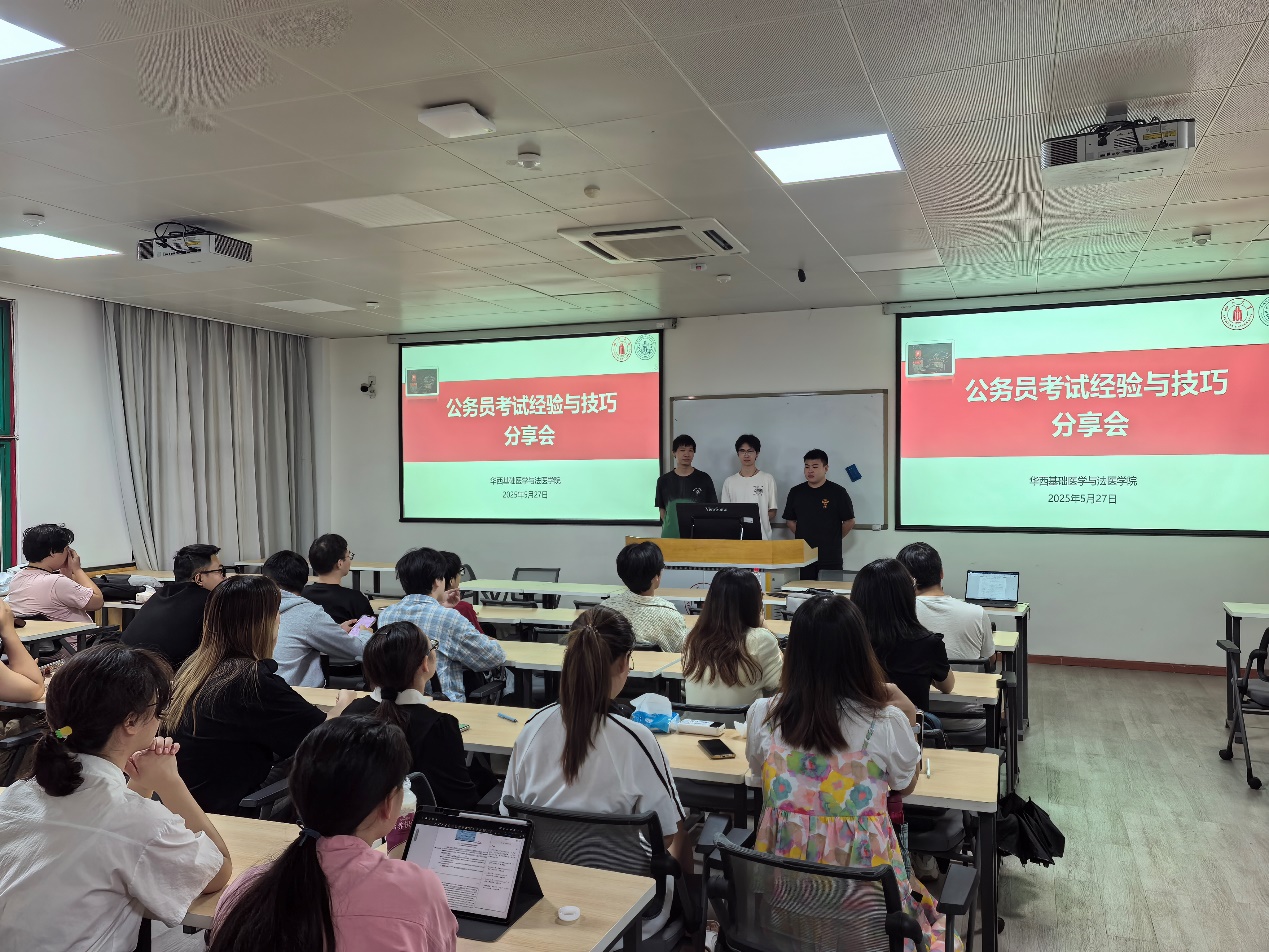 为了帮助同学们明晰公考路径、提升备考效率,充分发挥朋辈引领作用,5月27日下午,我院在华西校区第十教学楼1-3教室开展公务员考试经验与技巧分享会,2021、2022级部分同学参加,辅导员董晓爱、彭铎老师主持。