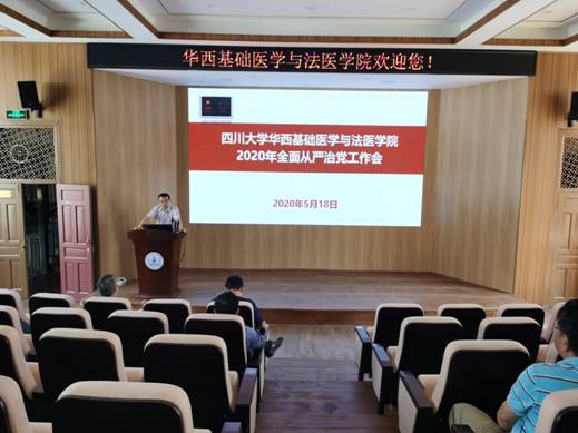 5月18日下午,学院在华西第五教学楼报告厅召开2020年全面从严治党工作会议。学院党委书记李昌龙、副书记郭晓伟、副院长方定志、副院长梁伟波、专职组织员刘肖珩,以及学院党委委员、纪委委员、各党支部书记、教研室(系、实验室)主任参加会议。