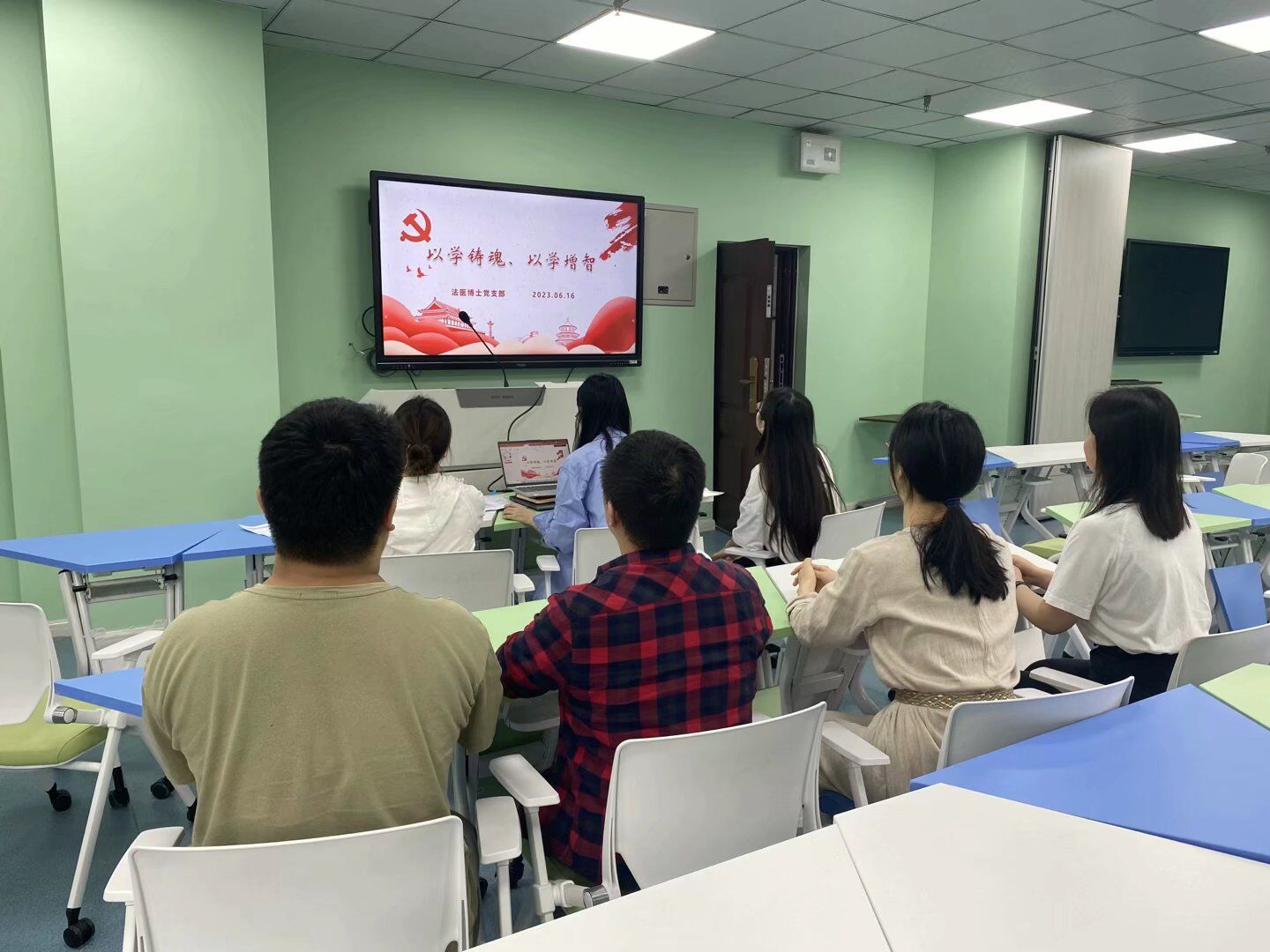 结合习近平总书记最新重要讲话精神,深入学习贯彻习近平新时代中国特色社会主义思想,6月16日,学院法医博士党支部在法医楼九楼会议室召开了“以学铸魂、以学增智”主题教育学习会。会议由党支部书记屈胜秋主持,全体党员参会。