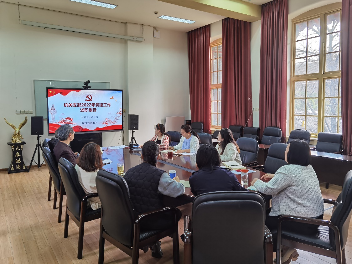 随后,党支部书记蒋宝晴向全体参会人员介绍本次组织生活会前期准备情况,从党建工作、公共服务、特色亮点、不足和改进几个方面对2022年度机关党支部的工作情况作了汇报,并通报了党支部委员会查摆的问题和今后的方向。全体党员对标对表开展批评与自我批评,联系思想和工作实际,查摆自身存在问题,提出具体整改措施,达到了既红脸出汗,又增进团结、促进工作的效果。之后,与会同志对党支部工作及支部班子进行了满意度测评,对本支部全体党员进行了民主评议。
