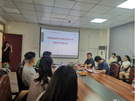 4月19日,感染免疫党支部在华西第五教学楼会议室召开党纪学习教育动员大会,传达学习学院党纪学习动员暨全面从严治党会议精神,部署支部党纪学习教育工作方案,支部全体党员和病原生物学系师生参加会议。会议由党支部书记陈达丽主持。