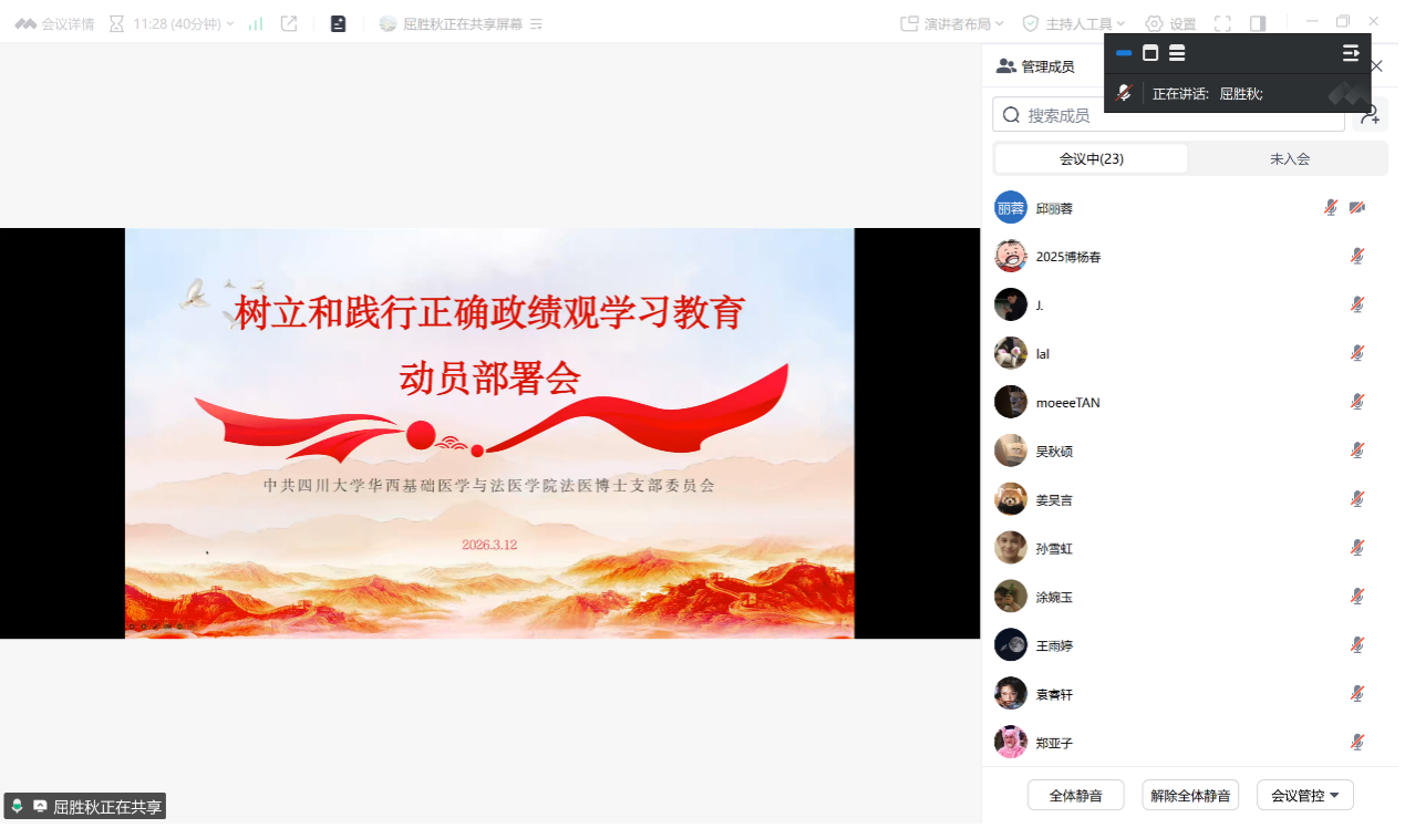 3月12日下午,法医博士党支部召开线上学习教育动员部署会。支部书记屈胜秋主持会议,学院党委副书记罗海玻到会指导并作动员讲话。