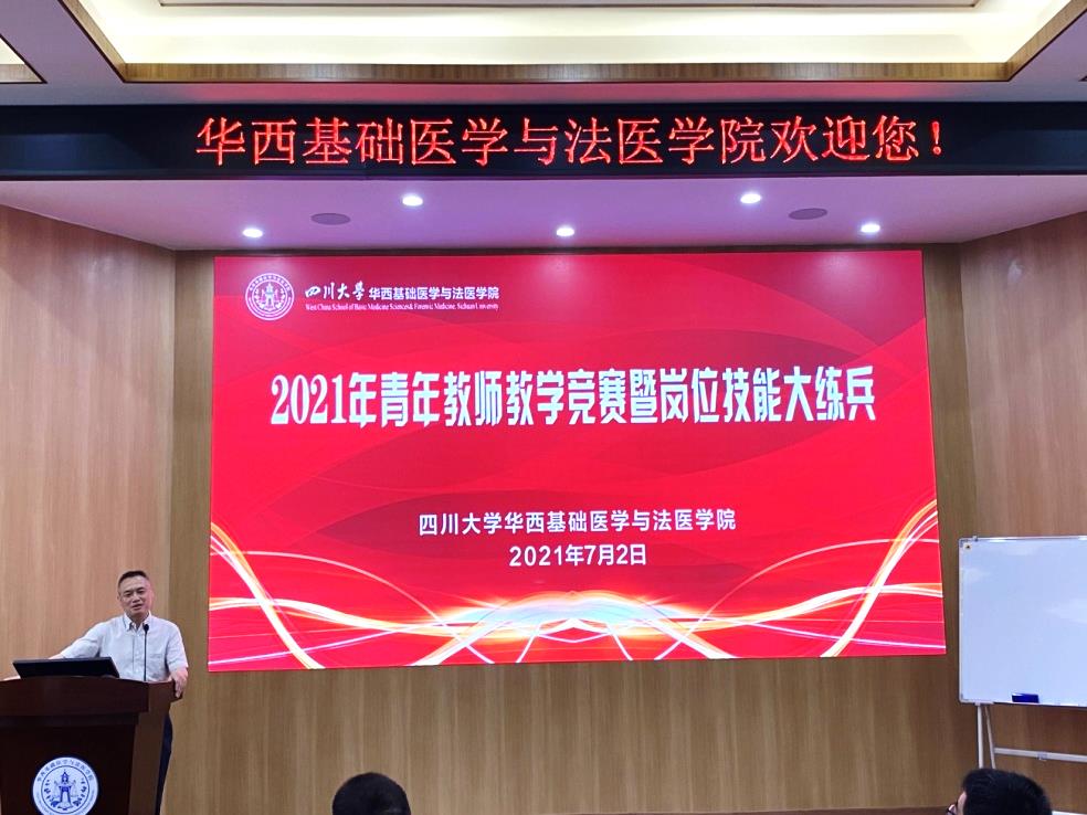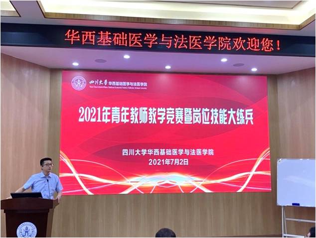 为进一步加强师德师风建设,提高我院教育教学质量,培养高素质青年教师队伍,学院于7月2日在第五教学楼报告厅隆重举行2021年青年教师教学竞赛暨青年教师岗位技能大练兵活动。学校教务处副处长、华西医学中心教学部部长卿平、学校工会副主席吕海涛、学院党委书记李昌龙、党委副书记郭晓伟及学院师生近八十余人参加。学院副院长梁伟波主持活动。