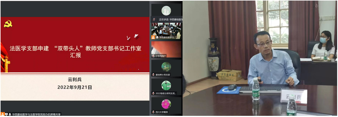 学院法医支部书记云利兵详细介绍了法医支部党建与学科建设融合发展的经验探索,并分享了申报校级“双带头人“工作室拟创建党建工作品牌、党建课题的心路历程和成功经验。