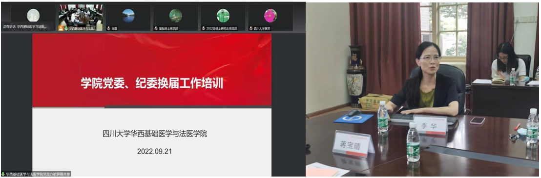 9月21日下午,学院在华西第五教学楼二会议室举行支部书记培训交流会暨“两委”换届选举培训会。为落实疫情防控要求,会议采用线上线下相结合的方式,学院党委书记李华、党委副书记陈维操、工会主席黄莉、全体党支部书记、支部委员和机关支部全体党员参会,会议邀请华西临床医学院(华西医院)党委委员、机关党总支书记、党委统战部部长姜洁同志作优秀党支部工作经验的专题分享。会议由学院党委副书记陈维操主持。
