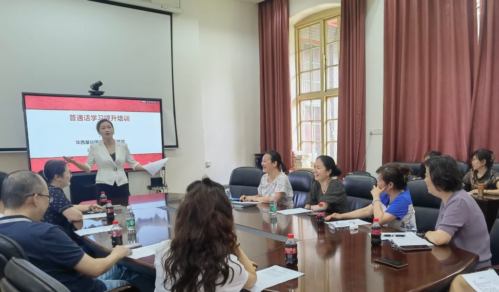 为了加强学院教师技能培训,提高我院教师课堂教学水平及语言交流能力,促进教师成长。7月5日中午,学院工会邀请国家一级播音员、成都广播电视台节目制作中心副主任李婷婷老师在五教会议室为老师们举行普通话提升培训,约四十名教师参加。