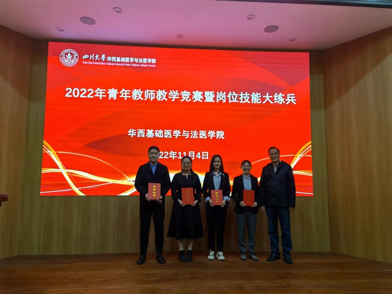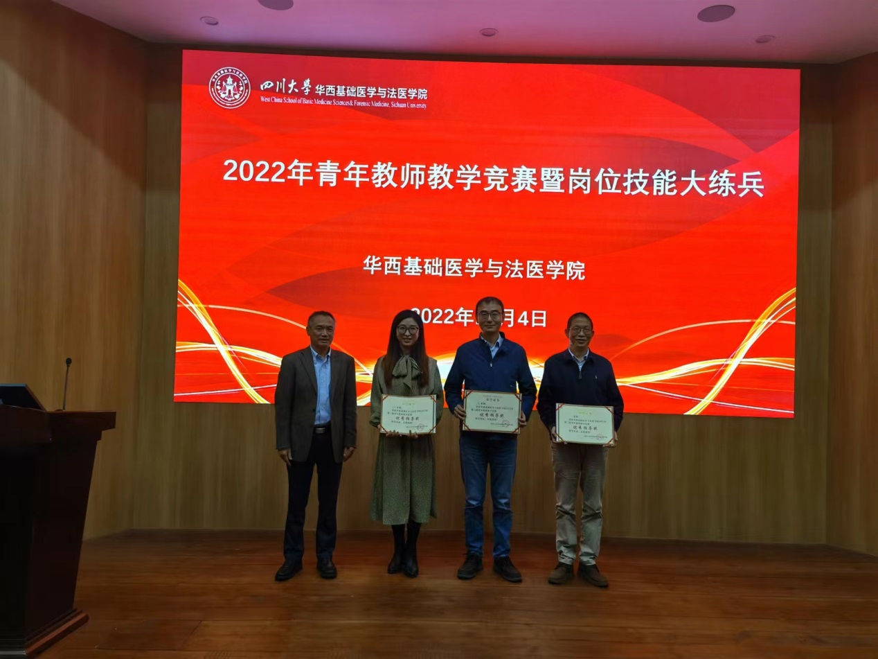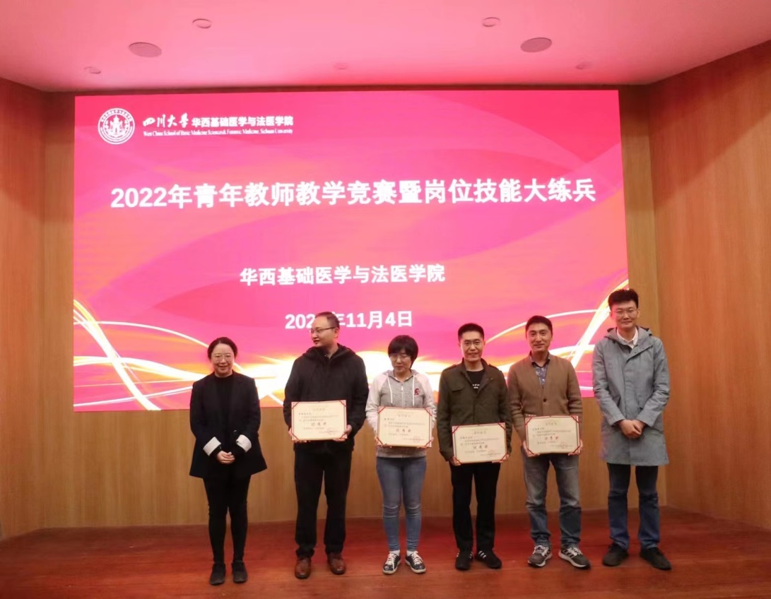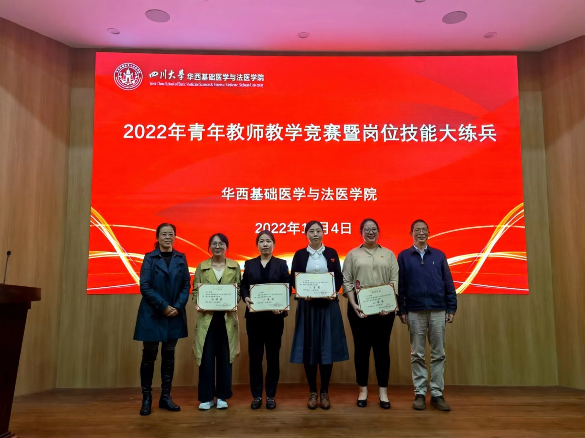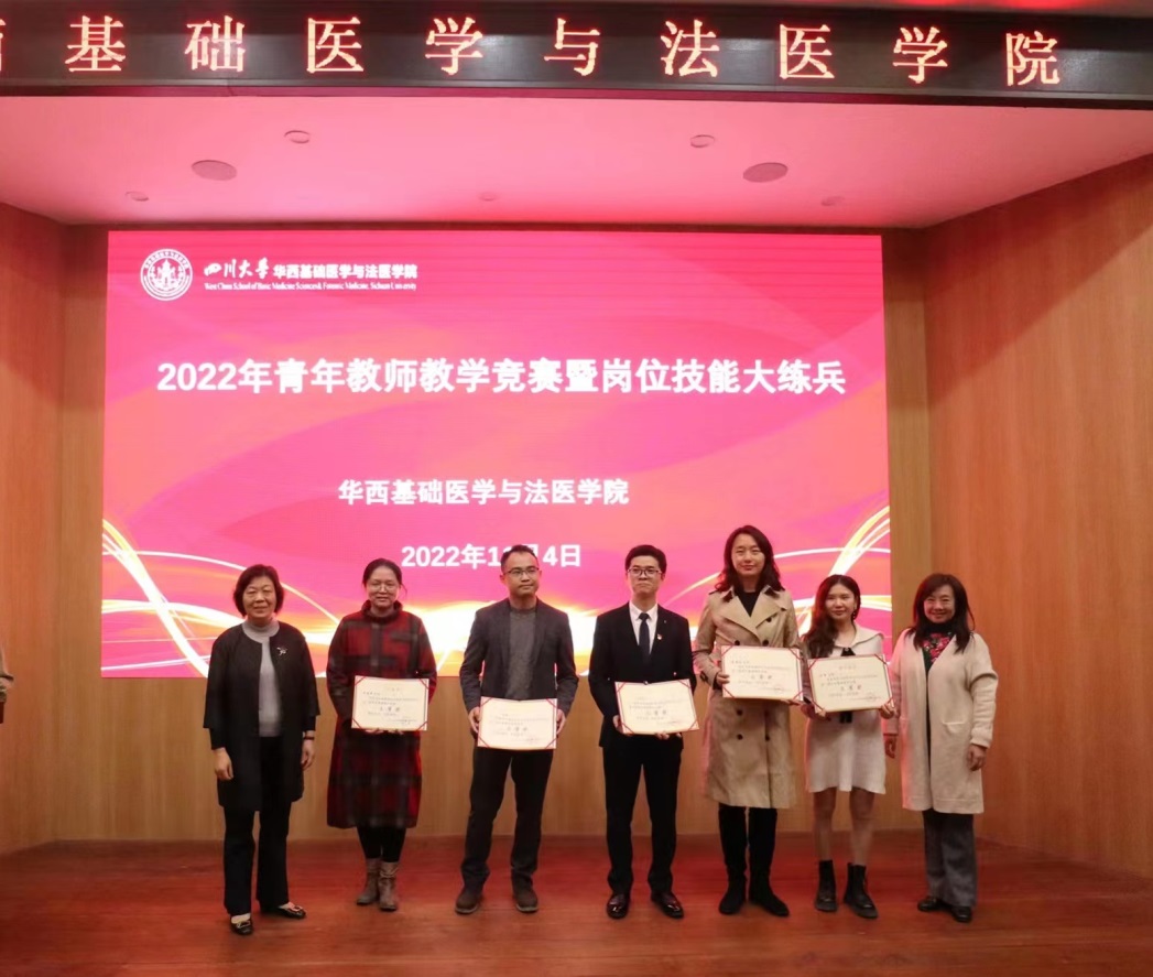 十位进入决赛的青年教师,用英文、中文展现自己扎实的教学基本功和良好的教学风采,现场教学思路清晰、表达流畅、课件设计新颖、互动有效有趣。专家评委从教学内容、教学组织、教学语言与教态、教学特色等多方面对参赛教师进行考评。通过精彩的教学展示和紧张的角逐,免疫学教研室王佩佩、病原生物学系郑之琬、法医毒(药)物分析教研室林瑶、法医物证学教研室屈胜秋四位青年教师获得一等奖。其他老师分获二、三等奖。免疫学教研室王霞教授、病原生物学系李浇副教授、法医毒(药)物分析教研室廖林川教授、法医物证学教研室罗海玻副教授评为优秀指导教师。