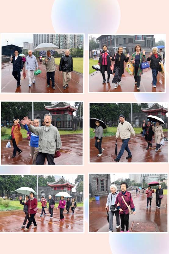 随着一声发令,参加健步走活动的老教师们怀着愉悦的心情,迈开矫健步伐,沿着健身步道一路前进。天空虽然蒙蒙细雨,但阻挡不了大家的热情,每位参加活动的老师脸上都洋溢着运动的快乐。行走途中,大家三五成群,团结互助,文明有序,氛围异常热烈,最后所有离退休教职工都坚持走到终点,收获了满满的幸福和快乐。