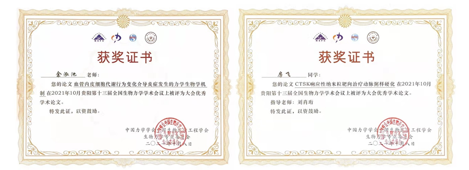 刘肖珩教授受邀在本次会议中就本课题组最新研究进展做了题为“骨质疏松对成骨细胞释放基质囊泡的影响及其调控机制”的主题报告。沈阳教授、曾烨副教授以及课题组多位研究生也分别在心血管生物力学、骨组织生物力学等分会场进行了相关汇报。