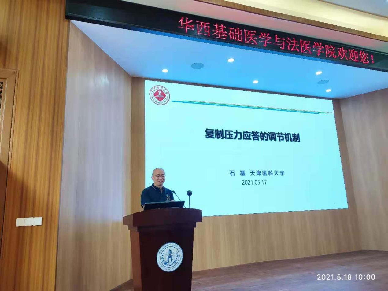 2021518日上午10:00,应我院邀请,天津医科大学基础医学卓越研究中心石磊教授在华西校区五教报告厅做了题为“复制压力应答的调节机制”的学术报告。