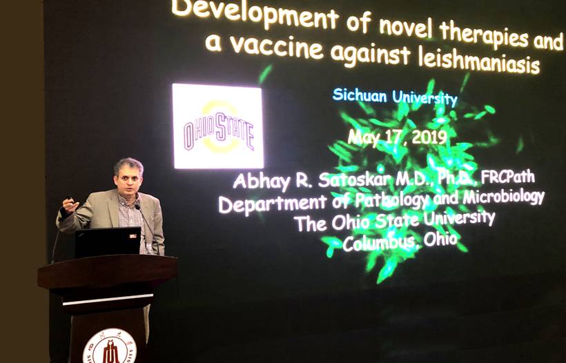 5月17日上午,应学院邀请,美国俄亥俄州立大学Abhay R. Satoskar教授来我院进行学术交流,为到场师生带来了题为“Development of novel therapies and a vaccine against leishmaniasis”的学术报告,报告在英国上市公司365华西校区逸夫楼报告厅举行,学院师生100余人参加报告,学院党委书记李昌龙教授主持了本次报告。