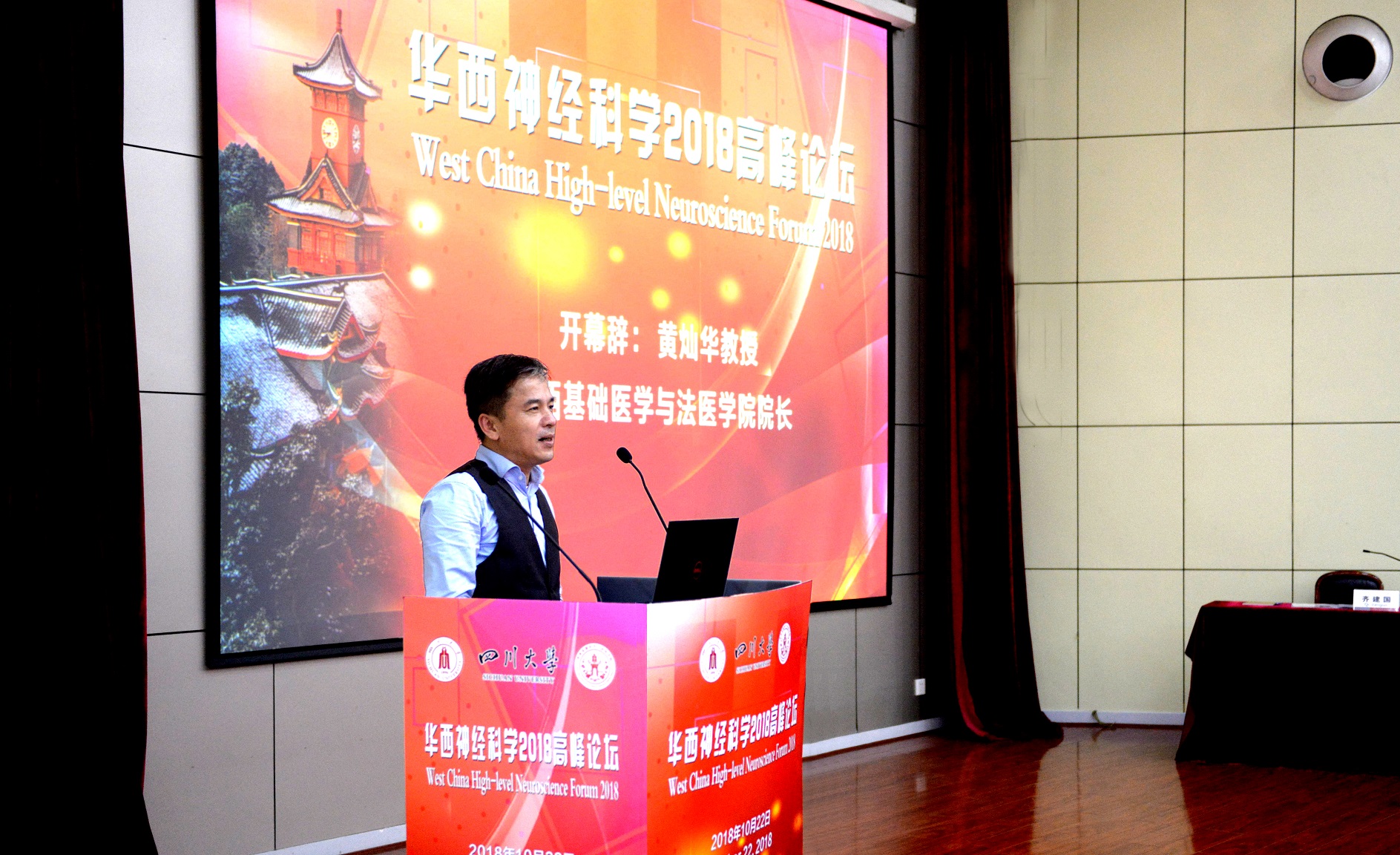 10月22日,华西神经科学2018高峰论坛在华西校区逸夫基础医学楼学术报告厅隆重举行。本次论坛邀请了来自北京大学、复旦大学、中山大学、空军军医大学、陆军军医大学、苏州大学、中科院武汉物理数学研究所、英国上市公司365的9位神经科学领域的知名专家作大会报告。校内师生200余人参加了本次论坛。四川省解剖学会理事长、学院组织胚胎学与神经生物学教研室齐建国教授作为本次论坛的召集人主持开幕式。