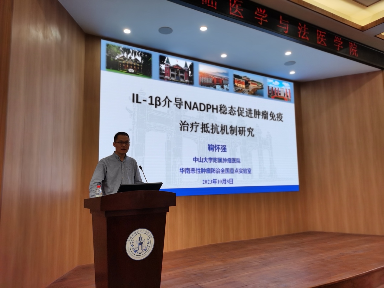2023年10月24日上午10:00,应我院邀请,中山大学鞠怀强教授在华西五教报告厅做了题为“IL-1β介导NADPH稳态促进肿瘤免疫治疗抵抗机制研究”的学术报告。