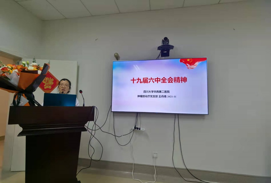 会上,张舒羽书记和李清丽书记首先分别对药理支部和华西二院肿瘤放化疗党支部的简要情况和主要成员进行了介绍。随后,华西二院肿瘤放化疗党支部纪检委员王丹青教授以“十九届六中全会精神”为题,给大家上了一堂深入学习党的十九大精神的党课;药理党支部谢娜副研究员给在座的各位老师分享了“应激医学的主要进展;华西二院肿瘤放化疗科物理师蒋家良、技师黄飞鸿生动形象地给大家分享了他们在中山大学肿瘤防治中心的进修经历和总结经验;华西二院肿瘤放化疗科工会主席何亚林护士长对工会特色项目进行了汇报,强调在紧张的工作之余,工会之家将会为大家提供全方位的服务。最后,华西二院肿瘤放化疗科主任尹如铁教授和药理支部书记张舒羽教授对此次学习活动进行了深入总结。